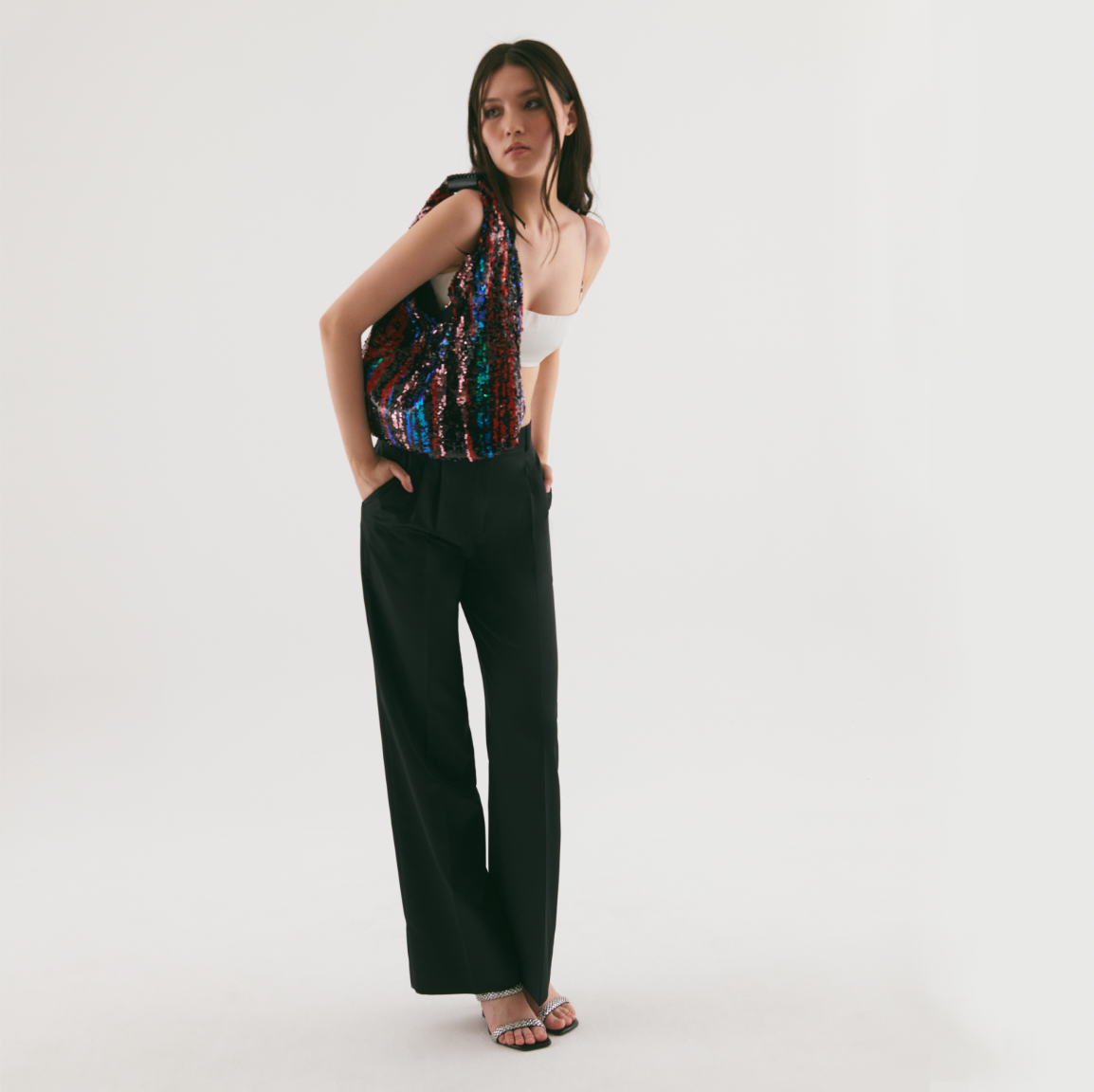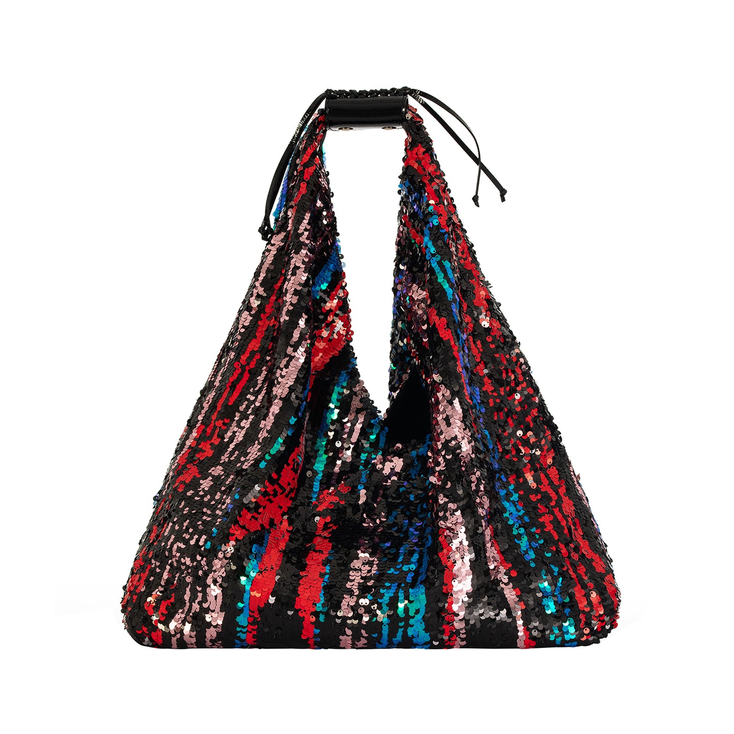 Multicolor-striped color sequined mini hobo bag100% viscose